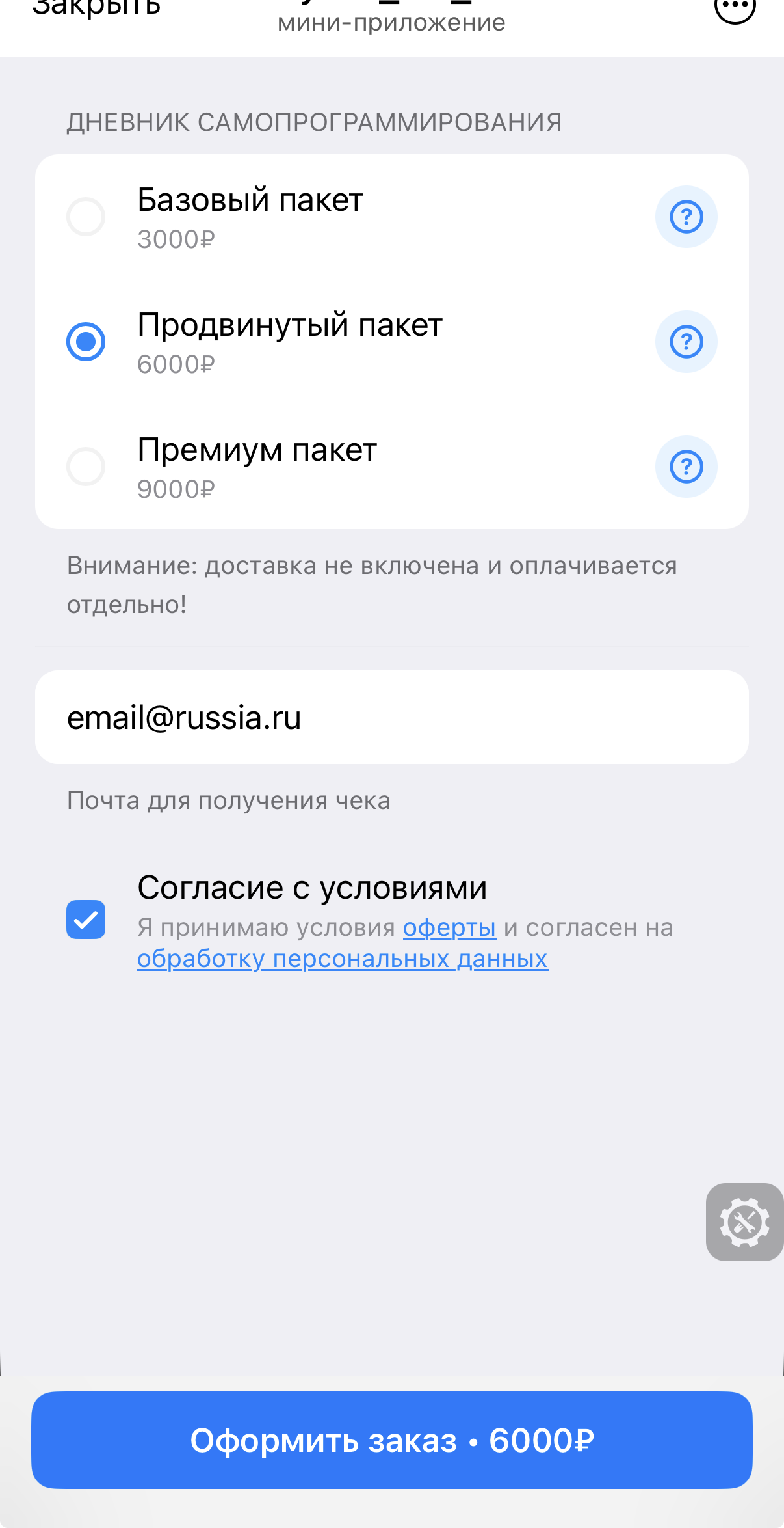 Перед покупкой укажите вашу электронную почту — на неё придёт чек.