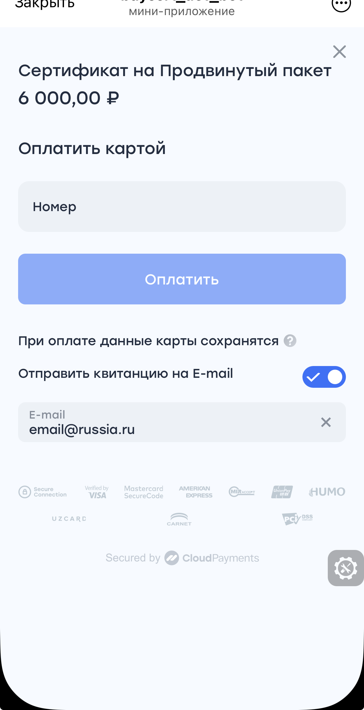 После нажатия на кнопку «Купить» откроется форма оплаты.