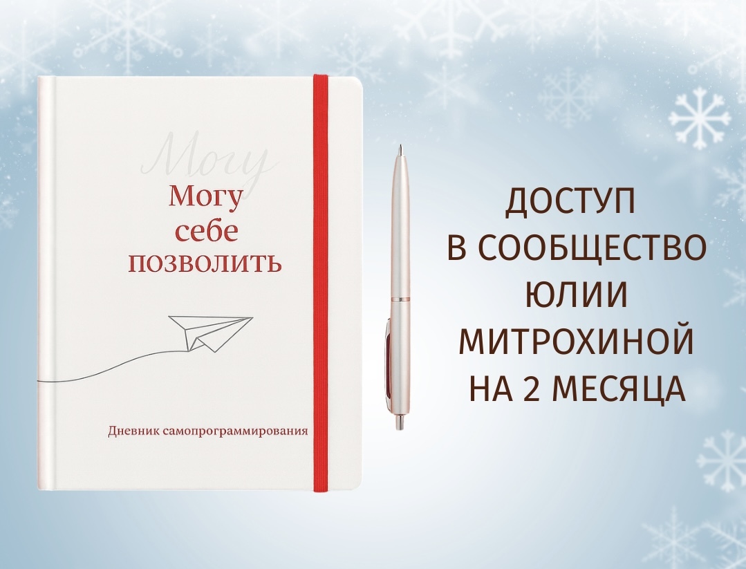 Комплект для мощного старта изменений: авторский «Дневник самопрограммирования» в печатном формате и 2 месяца участия в закрытом сообществе Юлии Митрохиной. Дневник помогает выстроить систему ежедневных практик и закрепить новые привычки, а сообщество даёт живую поддержку, мотивацию и доступ к уникальному контенту. Вместе они создают пространство, где работа с собой становится неразрывной частью жизни.